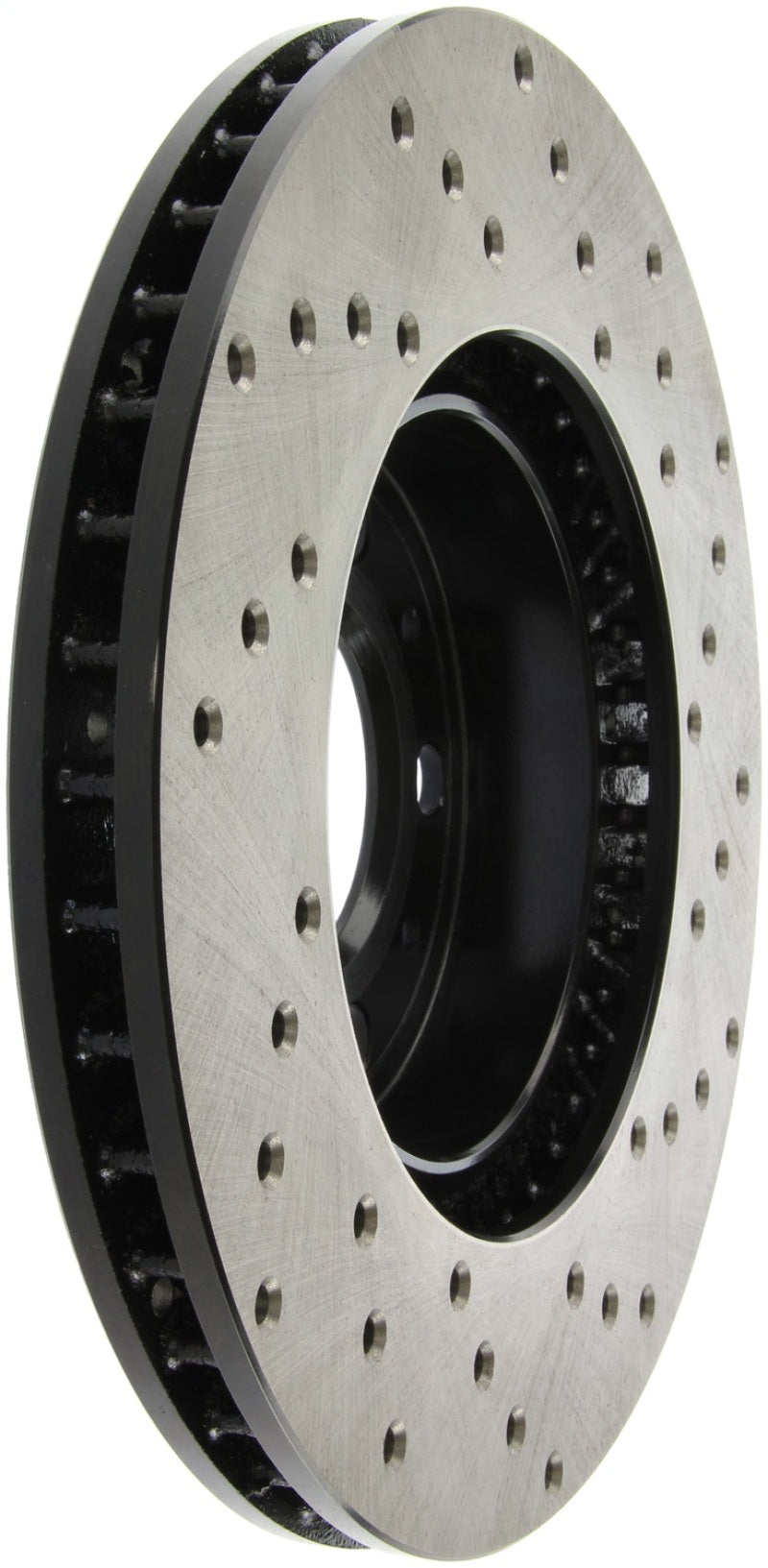 StopTech Drilled Sport Rotors are 1-piece direct replacement brake discs for factory brake systems and stock calipers that look great behind your wheels – and offer significantly improved braking performance. The unique cross-drilling aids with heat and brake dust dispersal, prevents glazing of the pads, adds bite and improves wet and dry braking performance. Built to last, the black e-coating provides protection from corrosion and the high carbon metallurgy (in most applications) offers quieter operation, better crack resistance and increased performance.