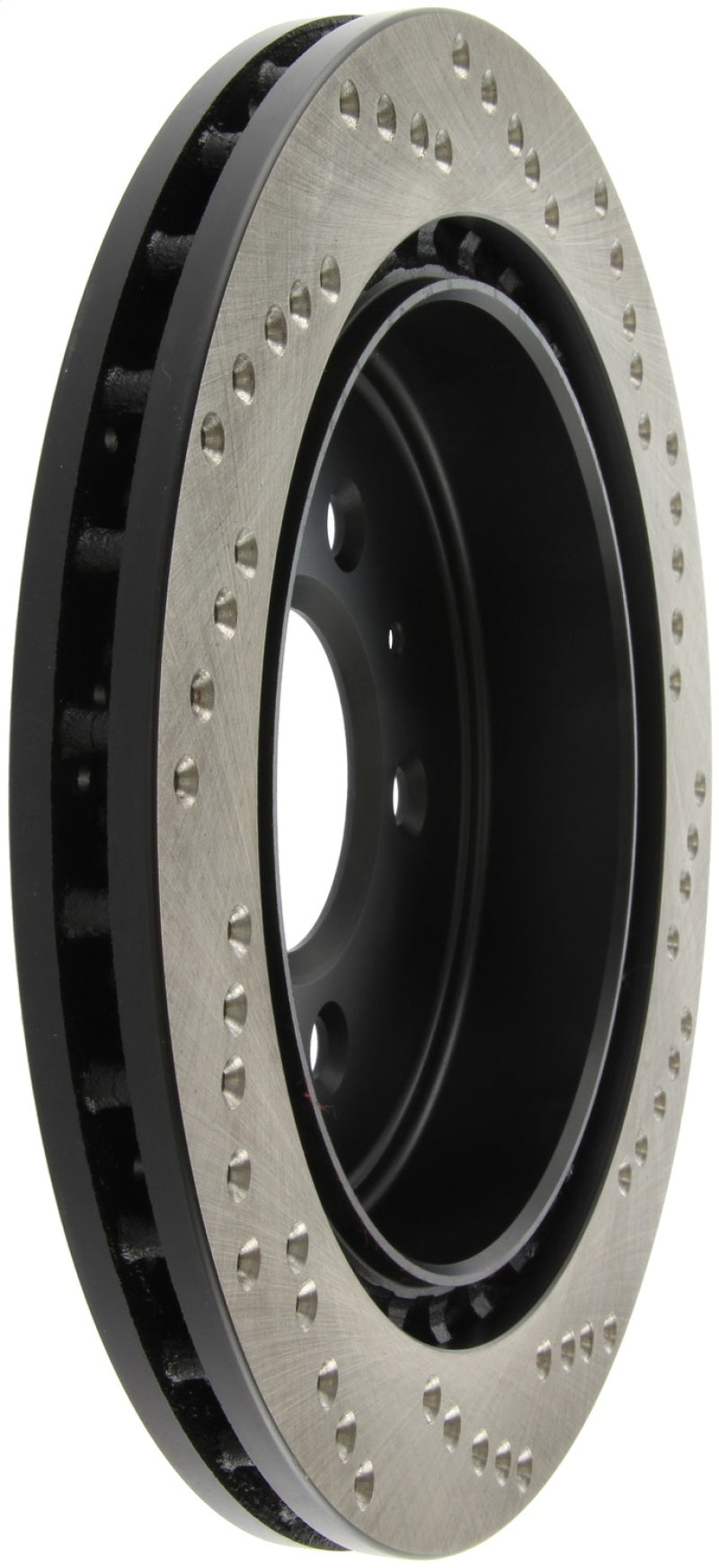 StopTech Drilled Sport Rotors are 1-piece direct replacement brake discs for factory brake systems and stock calipers that look great behind your wheels – and offer significantly improved braking performance. The unique cross-drilling aids with heat and brake dust dispersal, prevents glazing of the pads, adds bite and improves wet and dry braking performance. Built to last, the black e-coating provides protection from corrosion and the high carbon metallurgy (in most applications) offers quieter operation, better crack resistance and increased performance.