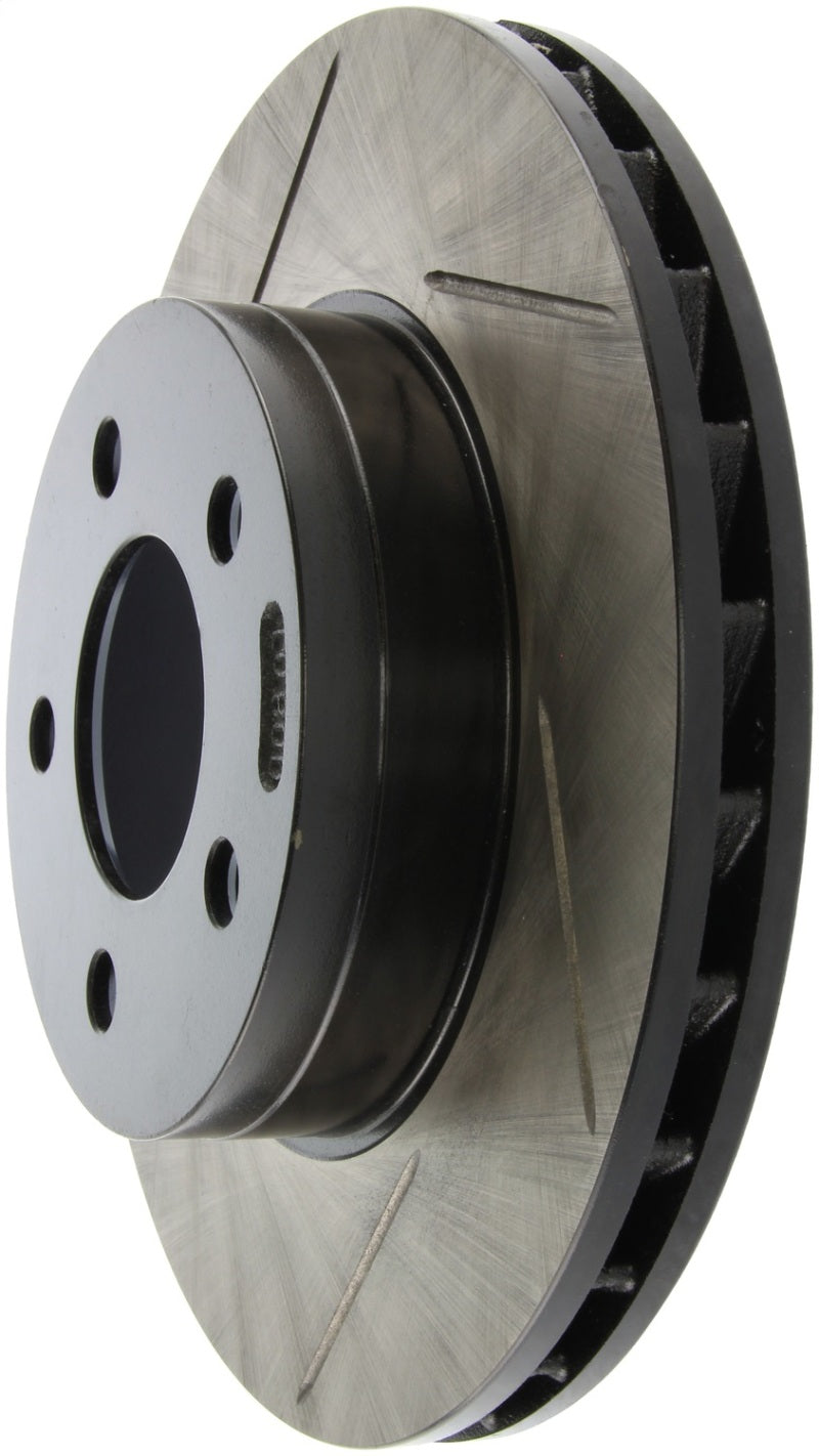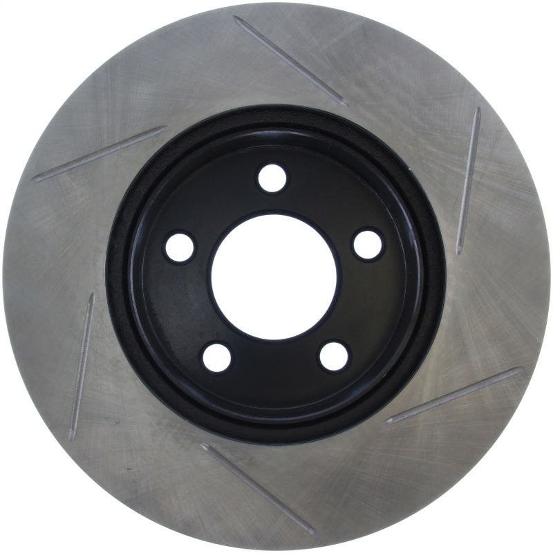 StopTech Slotted Sport Rotors are 1-piece direct replacement brake discs for factory brake systems and stock calipers that look great behind your wheels – and offer significantly improved braking performance. The unique slotting aids with heat and brake dust dispersal, prevents glazing of the pads, adds bite and improves wet and dry braking performance. Built to last, the black e-coating provides protection from corrosion and the high carbon metallurgy (in most applications) offers quieter operation, better crack resistance and increased performance.