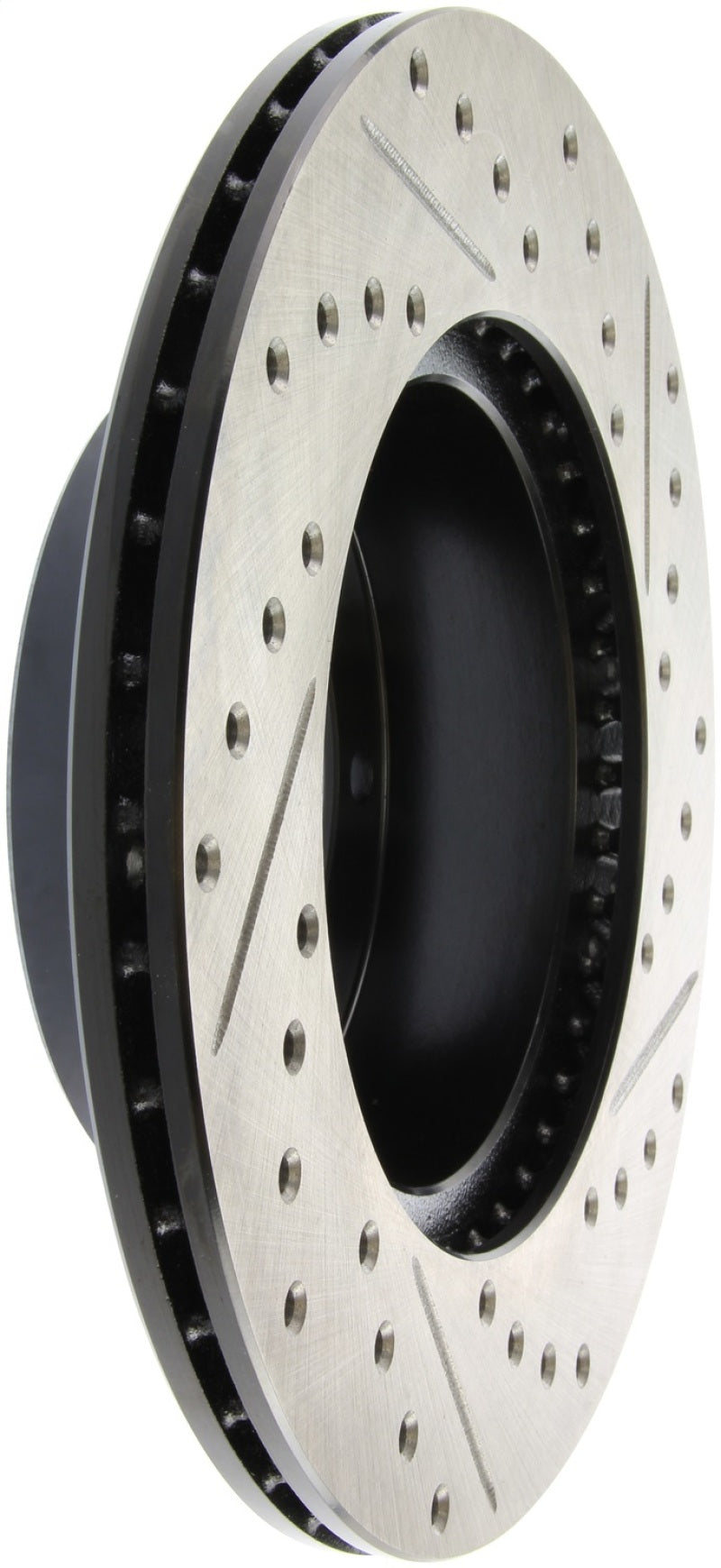 StopTech Drilled and Slotted Sport Rotors are 1-piece direct replacement brake discs for factory brake systems and stock calipers that look great behind your wheels – and offer significantly improved braking performance. The unique cross-drilling and slotting aids with heat and brake dust dispersal, prevents glazing of the pads, adds bite and improves wet and dry braking performance. Built to last, the black e-coating provides protection from corrosion and the high carbon metallurgy (in most applications) offers quieter operation, better crack resistance and increased performance.