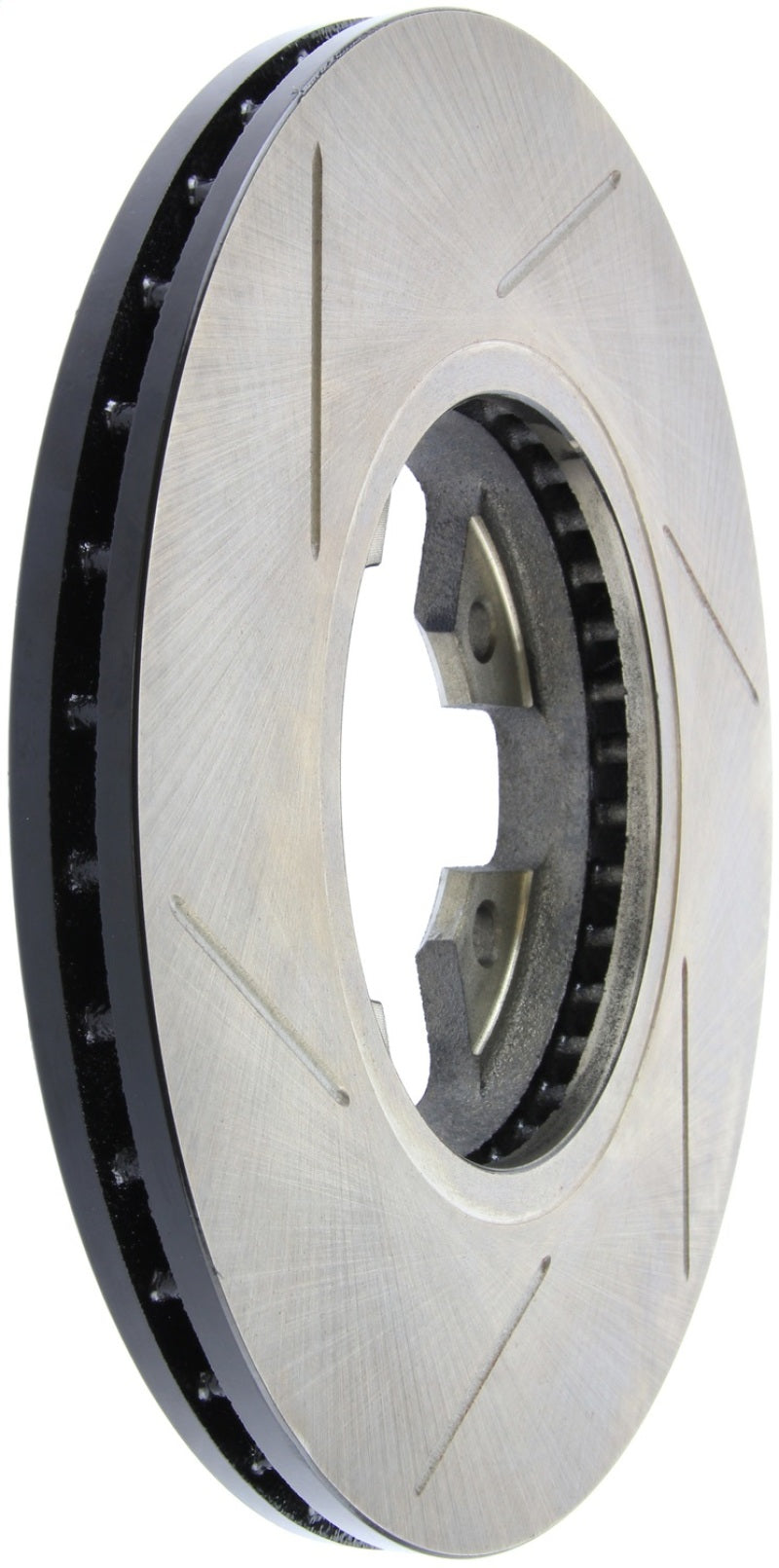 StopTech Slotted Sport Rotors are 1-piece direct replacement brake discs for factory brake systems and stock calipers that look great behind your wheels – and offer significantly improved braking performance. The unique slotting aids with heat and brake dust dispersal, prevents glazing of the pads, adds bite and improves wet and dry braking performance. Built to last, the black e-coating provides protection from corrosion and the high carbon metallurgy (in most applications) offers quieter operation, better crack resistance and increased performance.