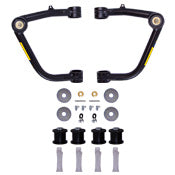 B8 Control Arms are a direct fit upgrade for factory upper control arms on trucks and SUVs. The kit contains a pair of control arms which correct the caster alignment for better straight line stability with lifted suspensions, and the improved pivot angles increase wheel travel and reduce stress on the joints. These strong black powder-coated 4130 chromoly steel arms are a tubular design which allows for more spring and shock clearance and feature greasable polyurethane bushings and heavy duty ball joints for the ideal combination of ride quality and durability with minimal maintenance needed. They come with detailed instructions and all necessary hardware for easy installation and are compatible with all Bilstein shocks and coilover kits. All components are replaceable.