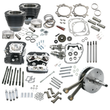 This 124" big bore/stroker Hot Set Up Kit® transforms a stock 88" engine into a 124" monster. This kit includes S&S 4-1/8" bore pistons, big bore cylinders finished in wrinkle black powder coat, a dynamically balanced 4-5/8" stroke three piece flywheel assembly complete with S&S heavy duty connecting rods and intergal mainshafts, S&S 640 gear drive Easy Start camshafts, S&S chromoly steel adjustable pushrods, S&S premium tappets,S&S Super Stock 91cc cylinder heads. When installed the kit yeilds a 124" engine with a compression ratio of 11:1. Although the engine is .960" taller than stock, there are no frame clearance problems, and a stock EFI Throttle body will fit because the manifold mounting surfaces of the heads have been specially machined to fit a stock length manifold. No fuel or ignition system is included. However, for the best results, a larger carburetor or EFI throttle body, performance intake and performance exhaust are recommended. The EFI system must be recalibrated.